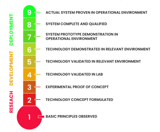 The Technology Readiness Level (TRL) scale was originally defined by NASA in the 1990’s to indicate the maturity of a given technology. In 2014, the scale was introduced to EU funded projects in the Horizon 2020 program (APRE & CDTI, 2022).